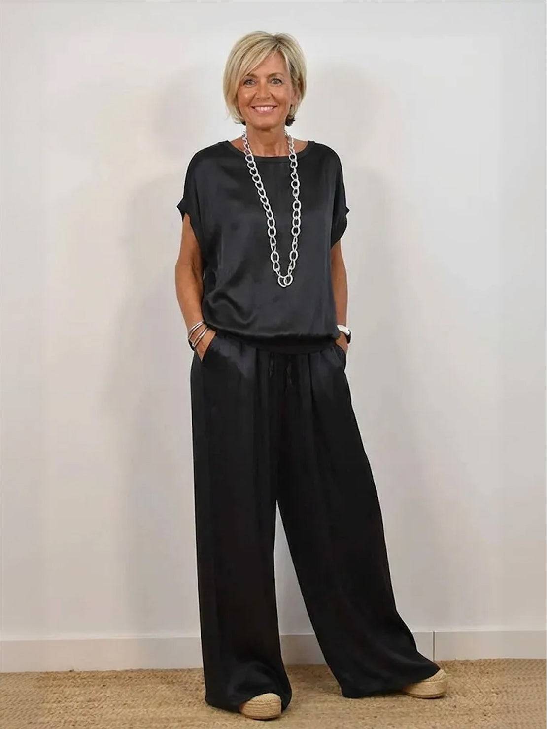 - It flatters your shape - The top slims your upper body, and those wide-leg pants give you room to breathe while looking absolutely elegant.