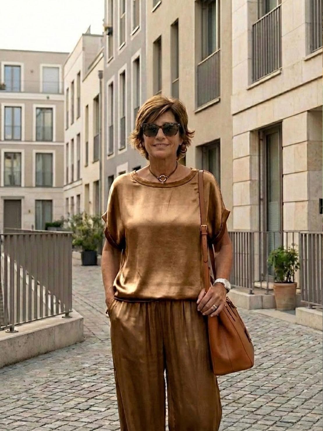 - This satin set moves with you - The fabric flows as you walk, giving you that luxury feel while letting you move freely all day.