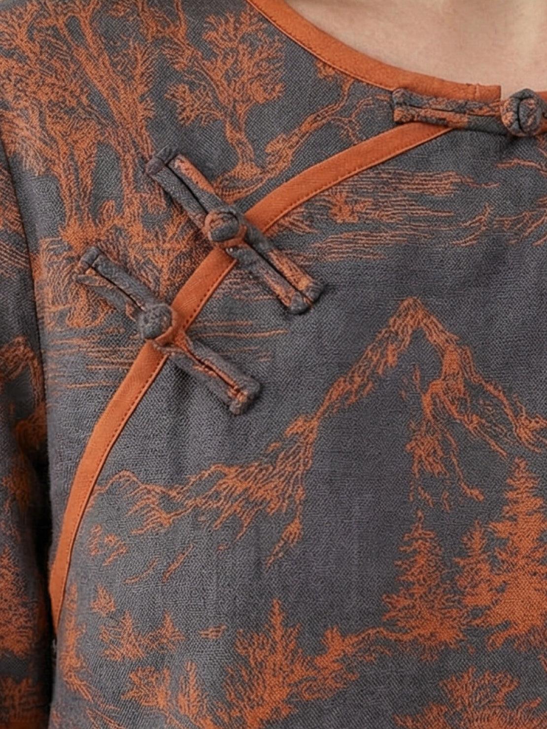 • Traditional Chinese-style asymmetric neckline with frog knot closures