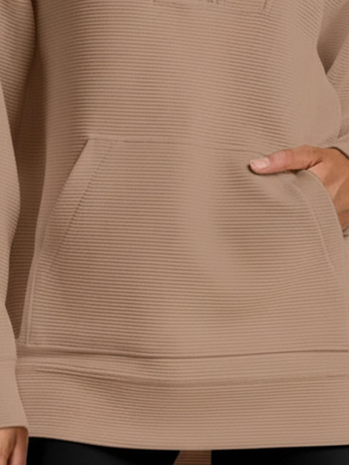 Yes, the front pocket is surprisingly roomy—perfect for your phone, keys, or keeping your hands warm. It's positioned comfortably and doesn't add bulk to the silhouette.