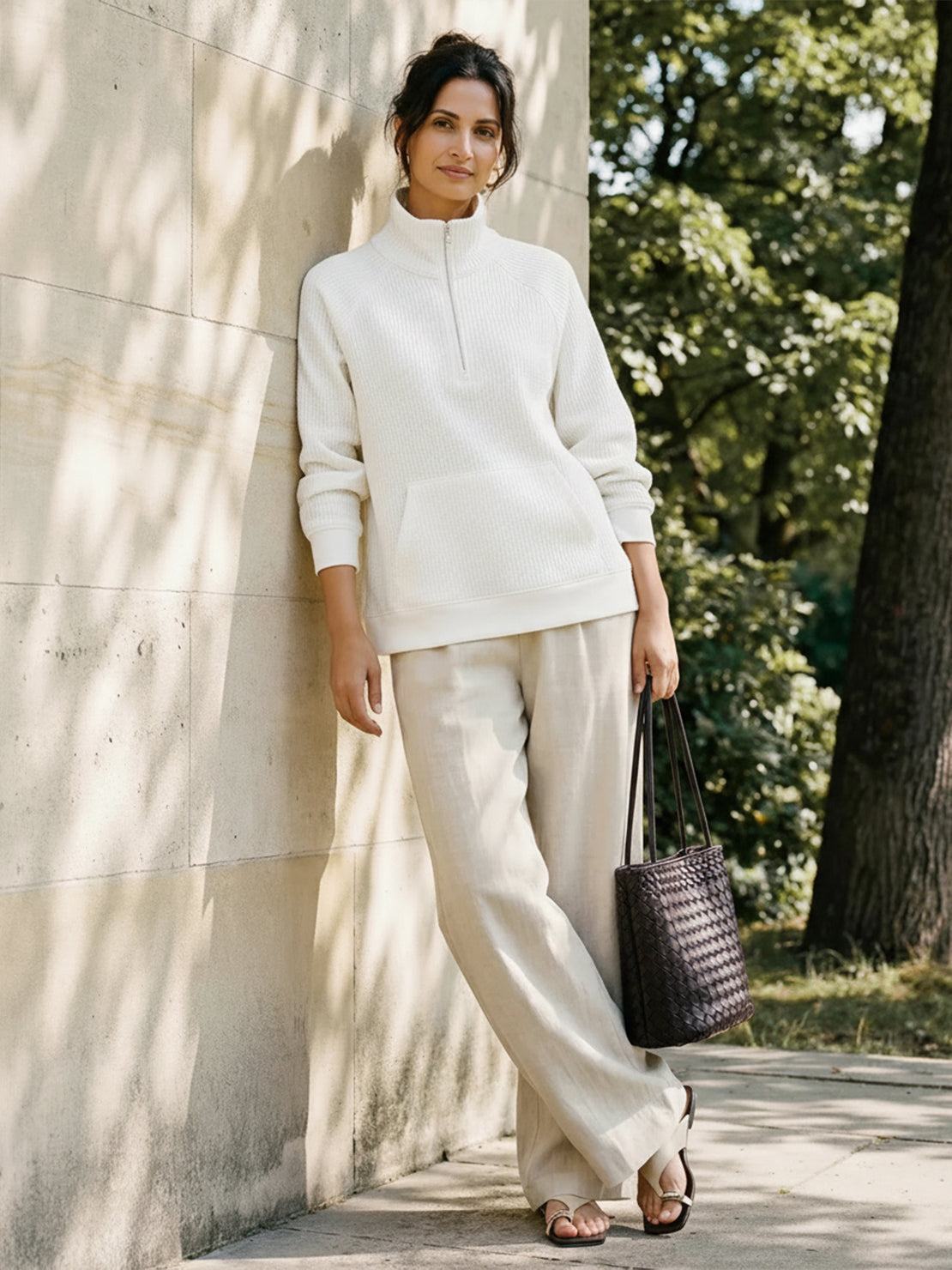 Style: Perfect for everyday comfort with a polished finish. Pair with jeans and sneakers for casual weekends, leggings for morning walks, or wide-leg pants for a relaxed-chic look. The neutral tones work seamlessly with any jacket or coat. Dress it down for errands or up with your favorite accessories.